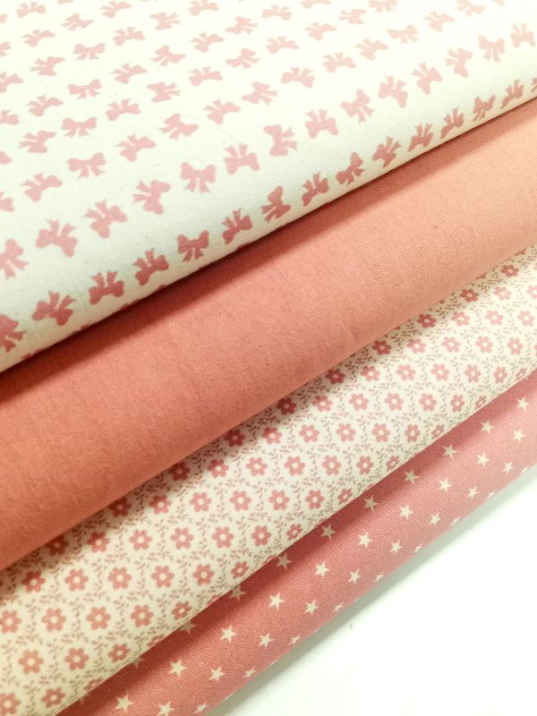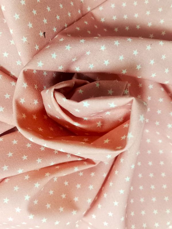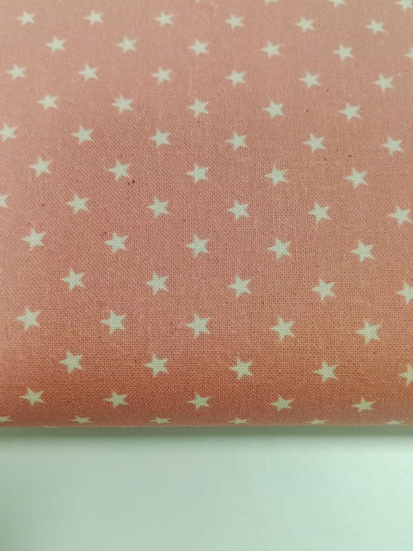 Minimum Qty: 0.4 CompararPrecioso popelín 100% algodón con el fondo en color rosa envejecido y estampado con estrellitas en blanco roto.